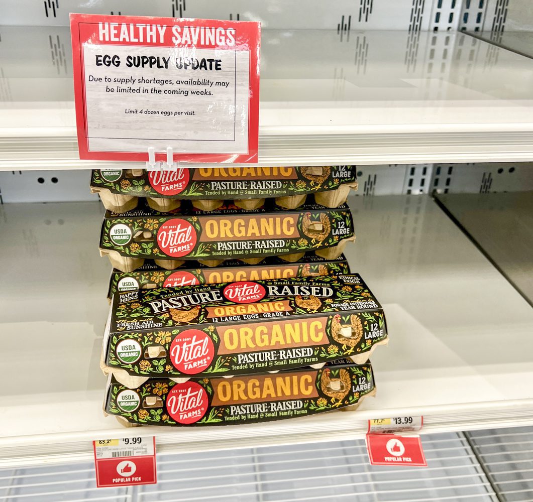 A sign was posted today indicating customers to expect a shortage of eggs in the upcoming weeks at the Sprouts location at Lomas and San Mateo Blvd. Photo by Roberto E. Rosales / City Desk ABQ