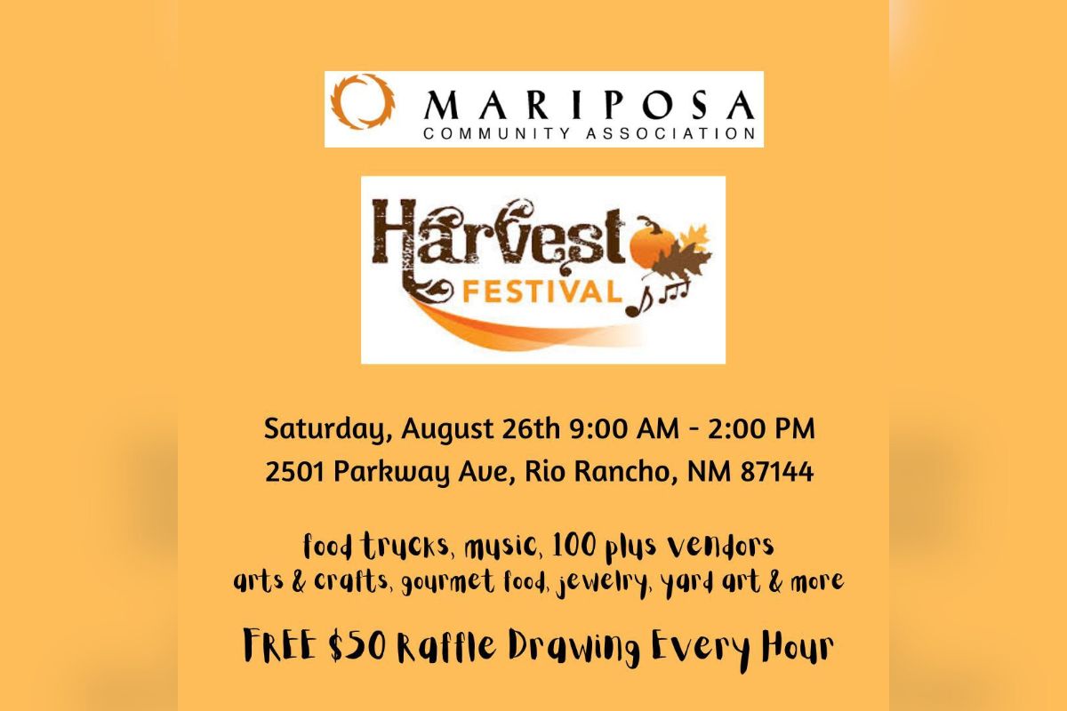 The Mariposa Community Association will host its annual Harvest Festival on Saturday, Aug. 26, from 9 a.m. to 2 p.m. at Mariposa Park.